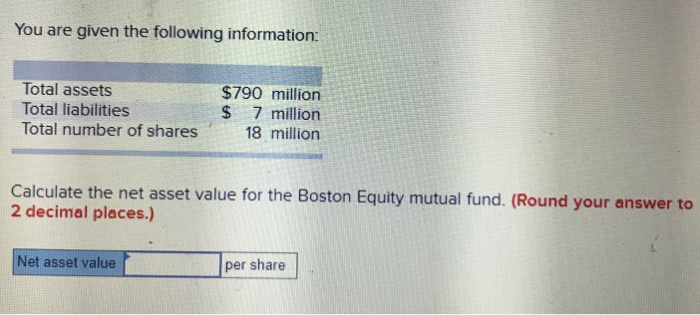 Net asset value = net operating income x cap rate / mortgage liabilities to calculate the nav, we must capitalize the operating income based on market rates. For example, if your security trades in these exchanges and has a closing value as indicated, the net asset value would be $2,138. A mutual fund is a pool of investments that are divided into shares to be purchased by investors. If you are familiar with the balance sheets of financial services companies, then you can think of nav as a way to determine the. Use the following formula as a reference for your calculations: Net asset value is calculated by taking the assets held in a portfolio, including cash, less all liabilities, divided by the total number of shares outstanding. Divide $10 by $11 to get 0.91. Simply subtract the value of the fund's liabilities from the value of its assets, and then divide the result by the number of shares. If you own multiple shares in the fund, you can multiply the nav by the number of shares you own to learn the market value of your investment. This represents the total value of an entity. Calculation of net asset value Net asset value (nav) is defined as the value of a fund's assets minus the value of its liabilities. It calculated as the total value of the entity's assets subtracted from the total value of its liabilities.
